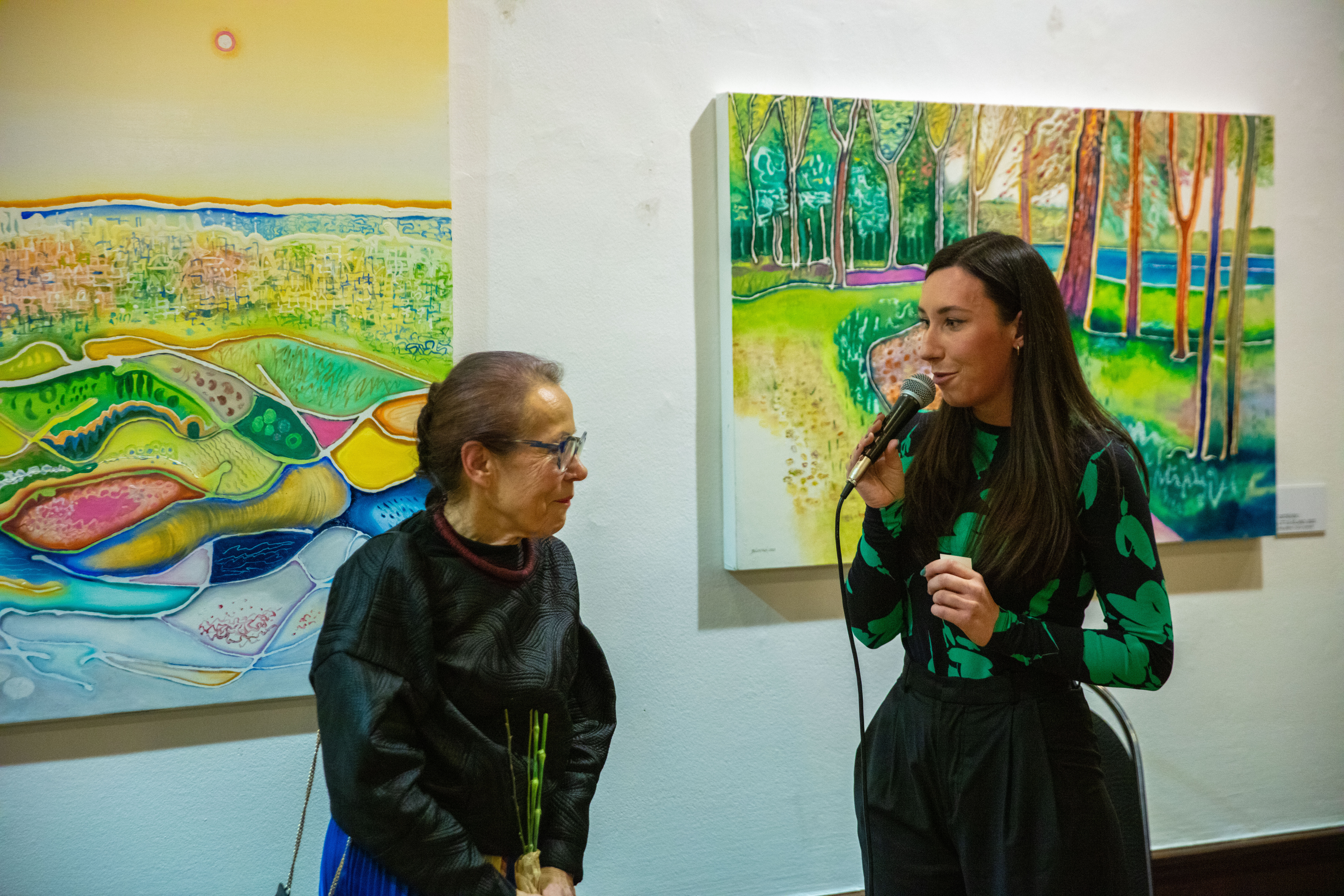 Nová výstava Jaroslavy Bičovské nese latinský název Vivat laetitia, což znamená: Ať žije radost a pohoda! To přesně vyzařuje soubor vystavených obrazů a kreseb – autentickou radost ze života, vnímání krás kolem nás. Autorka na svých dílech štětcem nebo tuší zachycuje stopy jakési každodennosti, jako je pohled oknem do vlastní zahrady či malebné prostředí jejího rodného Brandýsa. Prostor zde mají i olejové abstrakce, dynamické kompozice v jasných, zářivých barvách a pevných liniích. Lehkost a pohoda jsou jedním ze zásadních charakteristik jejích maleb. Výstavu doprovází ukázka z časosběrného dokumentárního filmu Tichá voda, který vznikal mezi lety 2014 a 2019 a přibližuje život a tvorbu této autorky.